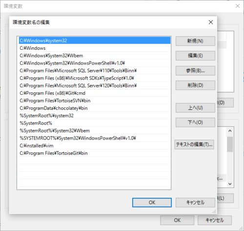 今までのWindowsでは環境変数Pathを編集するのに1行のテキストボックスでとても編集しづらかったけど、Windows 10で専用(?)のGUIが用意された。 もうメモ帳にPathをコピーして編集したり、サードパーティのPath編集ツールを使う必要はなさそう。以下のような…
